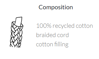 • Struktur: Flettet snor med bomullsfyll
