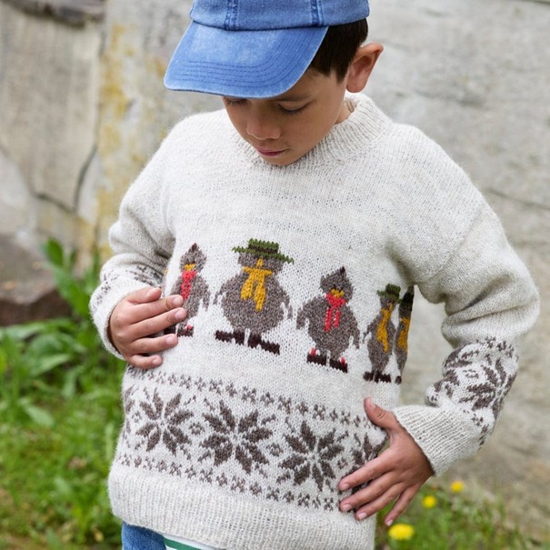 Flåklypagenseren er en morsom og nostalgisk barnegenser med Solan og Ludvig i hovedrollen 🤩 Genseren er designet i samarbeid med Flåklypa og strikkes i Finull – et slitesterkt ullgarn som gir både varme og lang levetid. Den har klassiske mønsterborder, åttebladsmønster fra Il Tempo Gigante og broderte detaljer som setter prikken over i-en. Genseren strikkes ovenfra og ned i glattstrikk, med mønsterborder og smarte teknikker som vendepinner og maskesting – akkurat passe oppfinnsomt, uten å bli for avansert. En perfekt genser for små eventyrere!